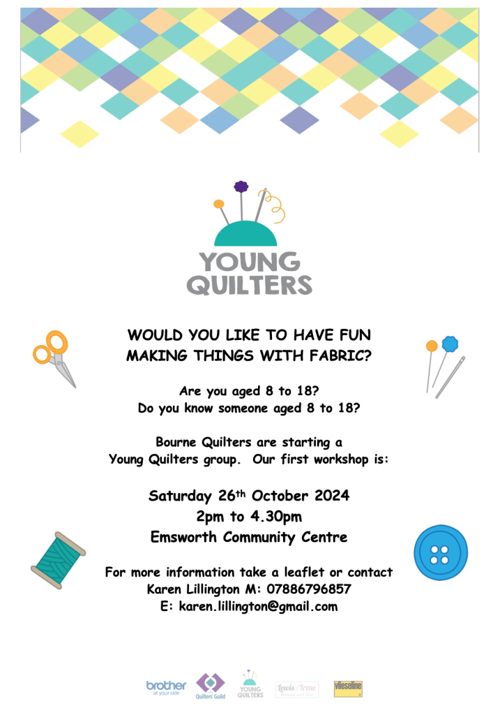 Bourne Quilters are very pleased to introduce our first Young Quilters Workshop. Please contact Karen if you would like to attend or know more about Young Quilters. We look forward to seeing you there.
