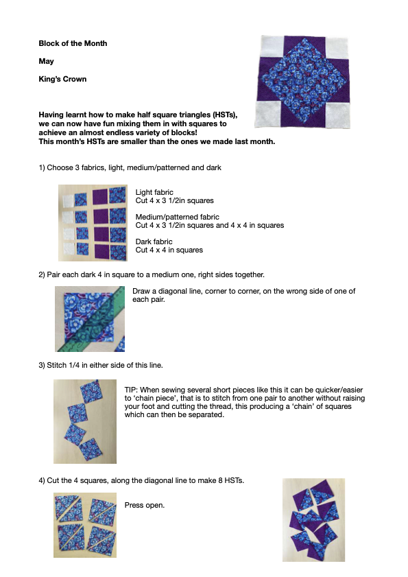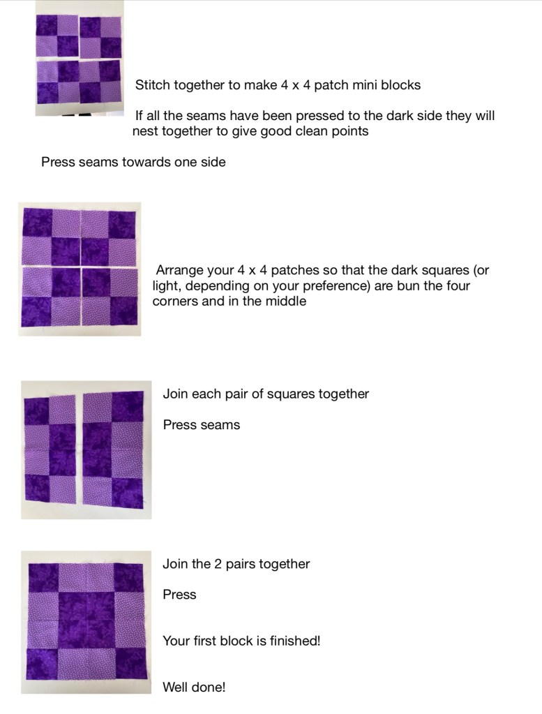 For 2025 we are running our first Block of the Month. Each month, for 9 months, we will be introducing a new block for you to make. Then we will look at sashing (paying together), quilting and binding to finish your quilt. So, by this time next year you will have a completed quilt, in plenty of time for our 2026 show.