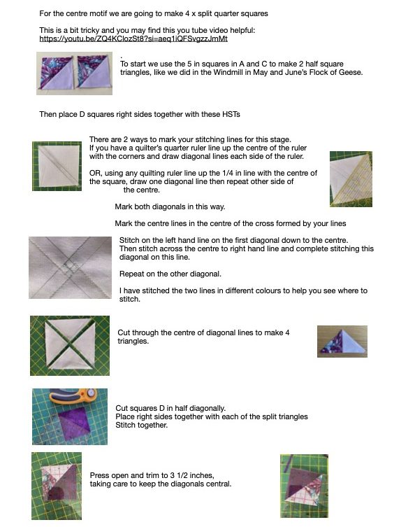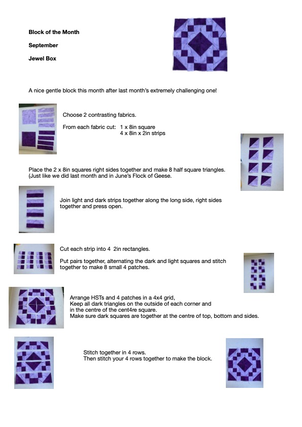 In November we will look at quilting the blocks and Sandie is going to run a Tuesday mini workshop at Westbourne to help with this.